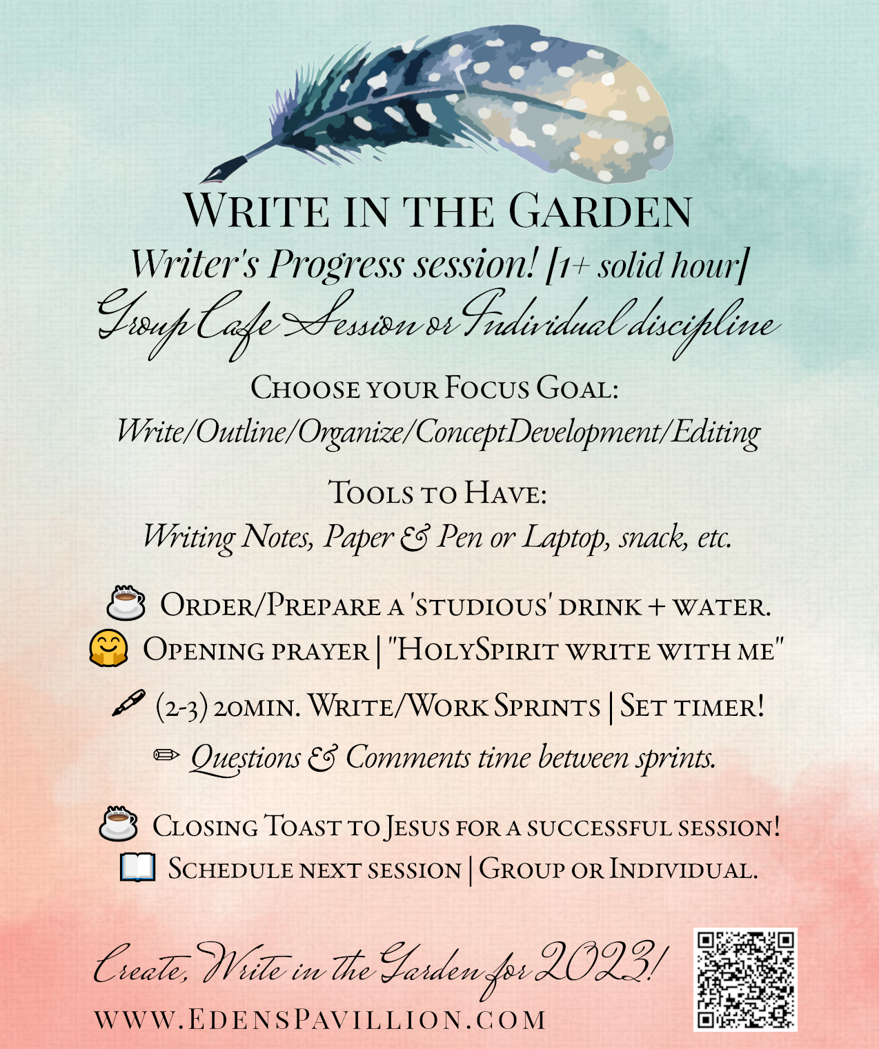 “Write in the Garden.” ☕😀📝